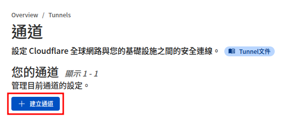 在 Cloudflare dash board 上開啟 Zero Trust 服務後,便會有一個自己的 Zero Trust team,選擇網路 > Tunnel 後就可以開始建立 Tunnel