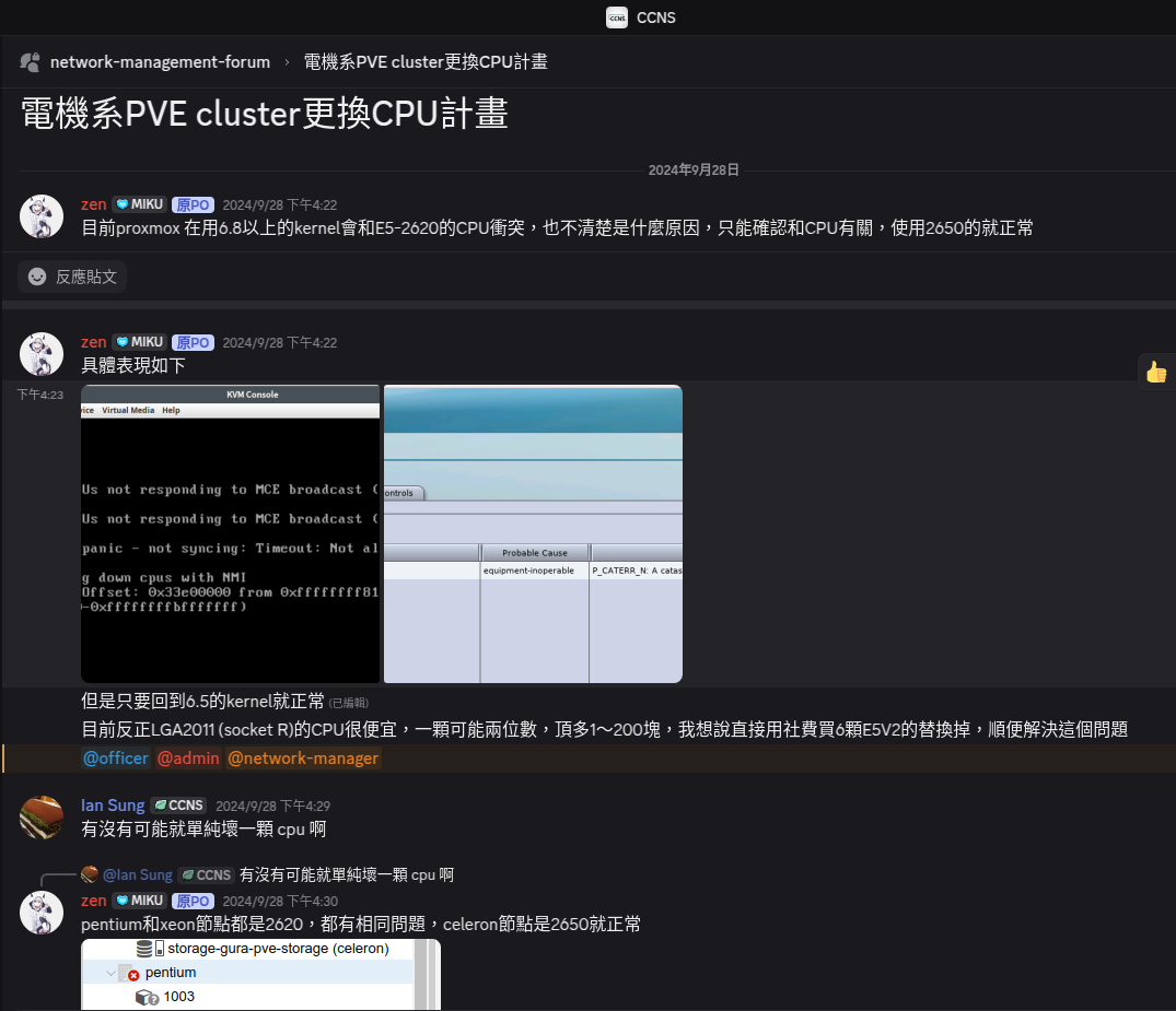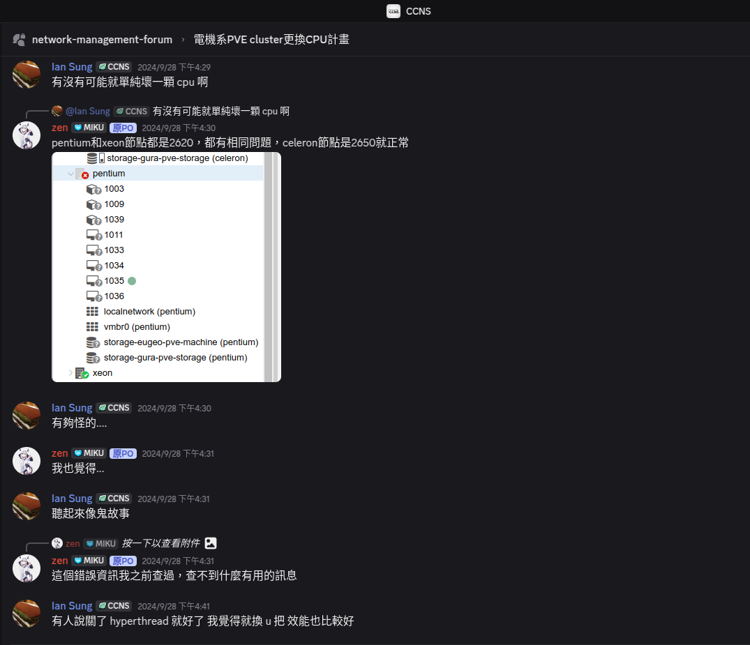 在2024年的9月底,我例行完成了社團機房 PVE Cluster 的更新工作,在逐節點重啟時,重啟到第二台發現機器無法正常重開