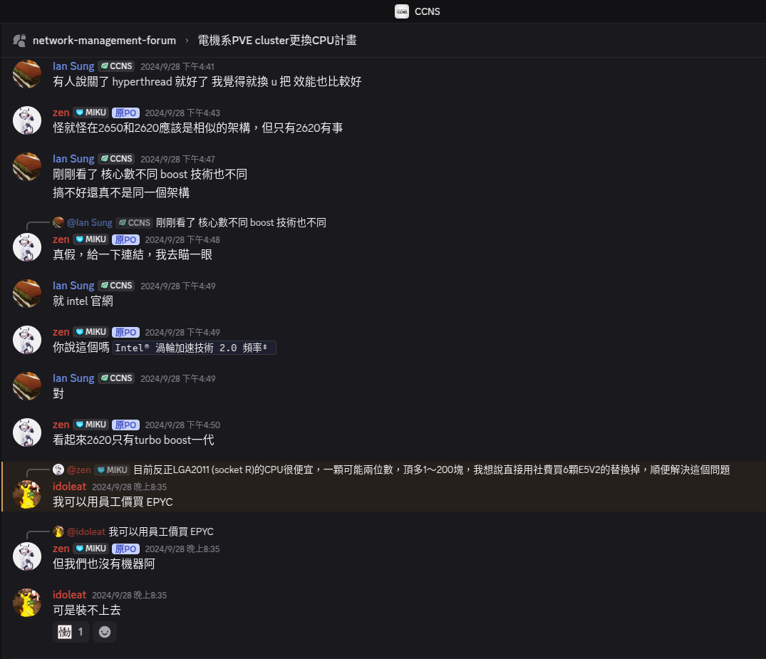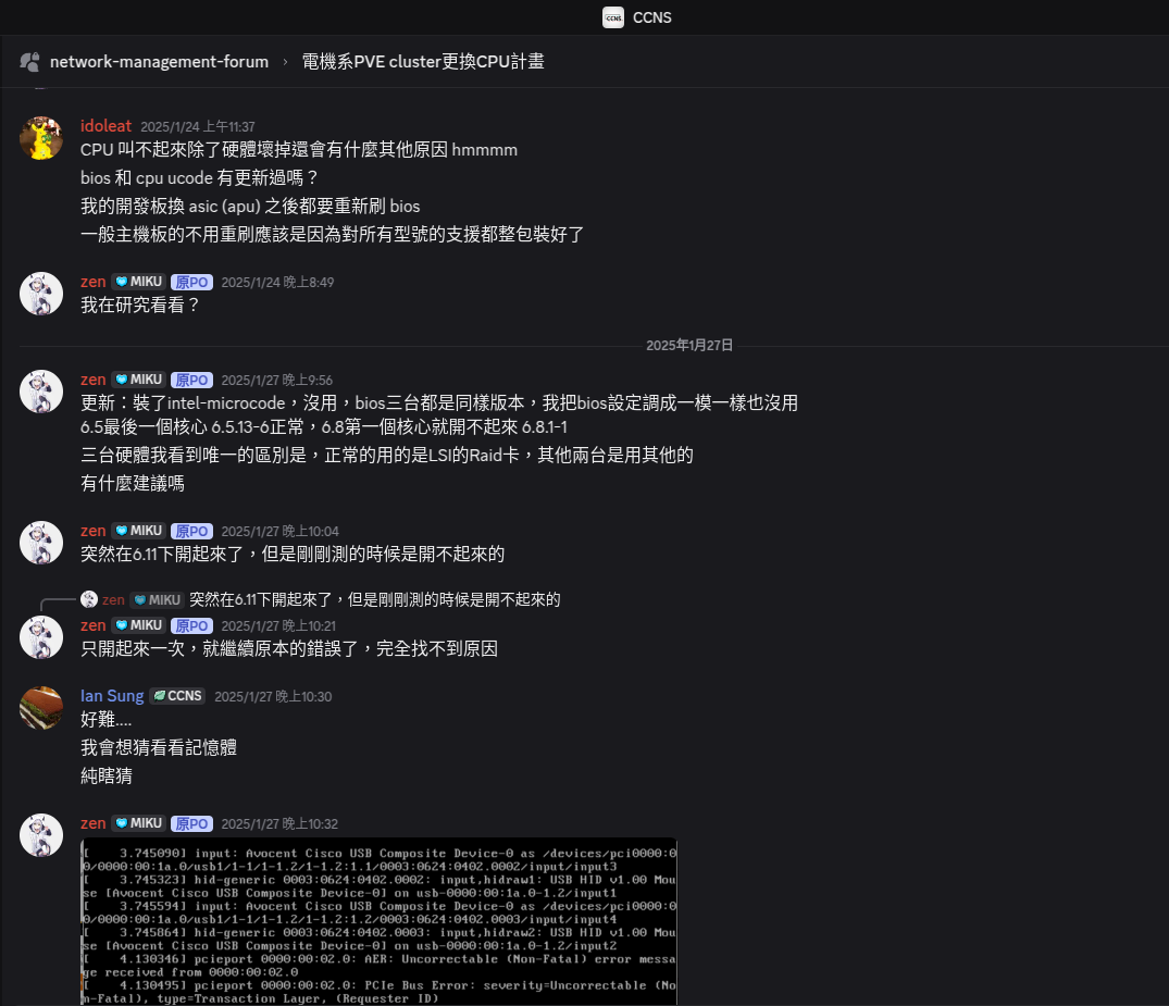 又過了一段時間, CPU 到貨了,並且在1月多時喬時間進了機房換 CPU,其實換 CPU 時也發生了不少狀況,不過不在這篇文章的範圍,就跳過了。