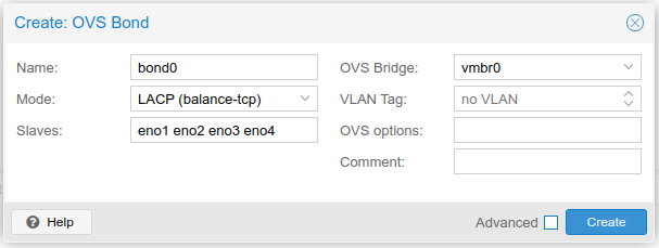 接著建立 OVS Bond,選擇剛建立的 OVS Bridge,可以在 OVS options 的地方加上other_config:lacp-time=fast