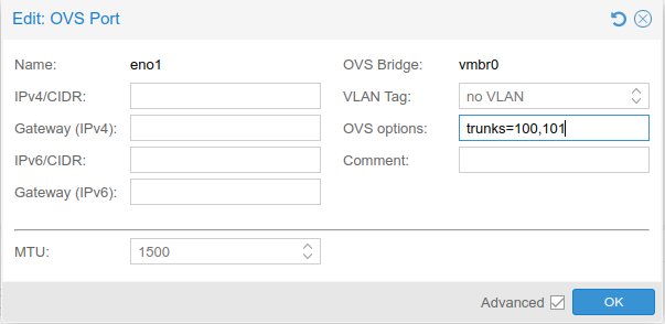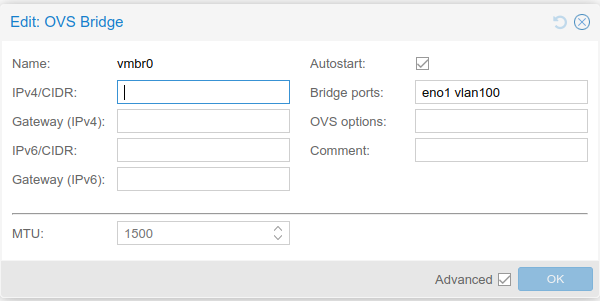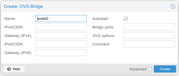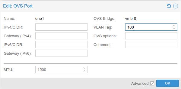 Open vSwitch 我記得是在 PVE v6 還是 v7 的時候加入的,如果對於 vmbr 的需求只有傻瓜交換機的功能,那麼使用 OVS 和 Linux Bridge 體驗是相同的,不過如果有使用到 vlan 的功能,那麼我覺得 OVS 的設定比較容易理解,架構類似於一台交換機,不需要去處理 Linux Bridge 的 vlan-aware 之類的選項。