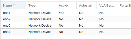 機器有的網路介面如下,目標是將四個網路介面聚合