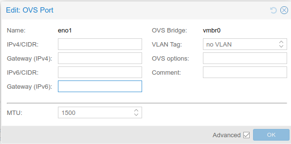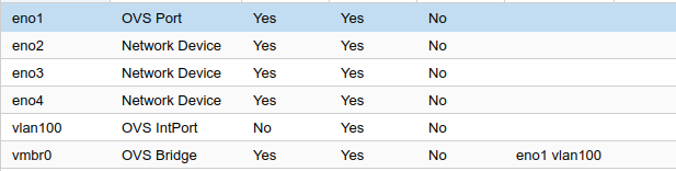 OVS 創建一個 vmbr 可以理解為建立一個交換機,將一個網口加入 OVS Bridge 中相當於給這個交換機加上一個網路接口,而原本的接口變為 OVS Port。